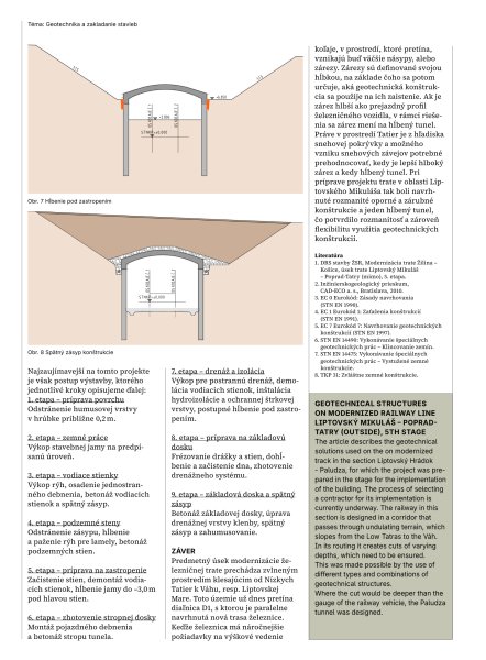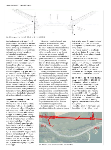Obsahom článku sú geotechnické riešenia zárubných a oporných múrov na modernizovanej železničnej trati v úseku Liptovský Hrádok – Paludza, ktorá je v procese verejného obstarávania na výber zhotoviteľa. Súčasťou toho istého projektu, resp. modernizovanej časti, je aj hĺbený tunel Paludza. Železnica vedie vo vybranom koridore v blízkosti diaľnice D1 a prekonáva viaceré terénne nerovnosti. Od samotnej hĺbky zárezov, v ktorých trať vedie, boli odvodené a projektovo pripravené rôzne typy a kombinácie geotechnických konštrukcií.